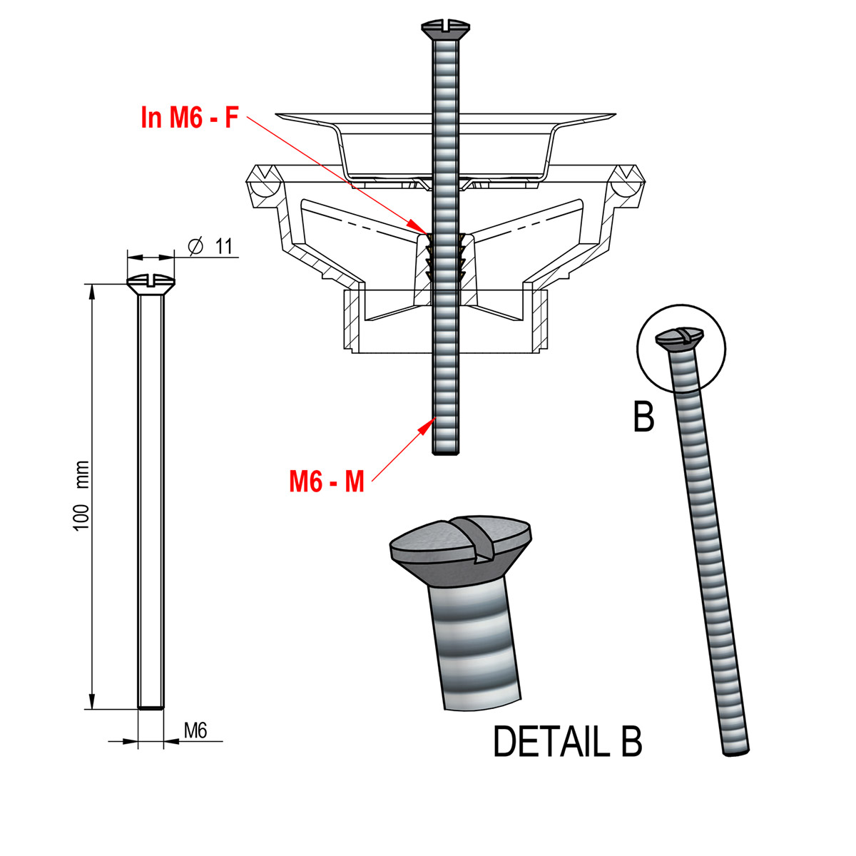 Screw M6X100 for drain fittings