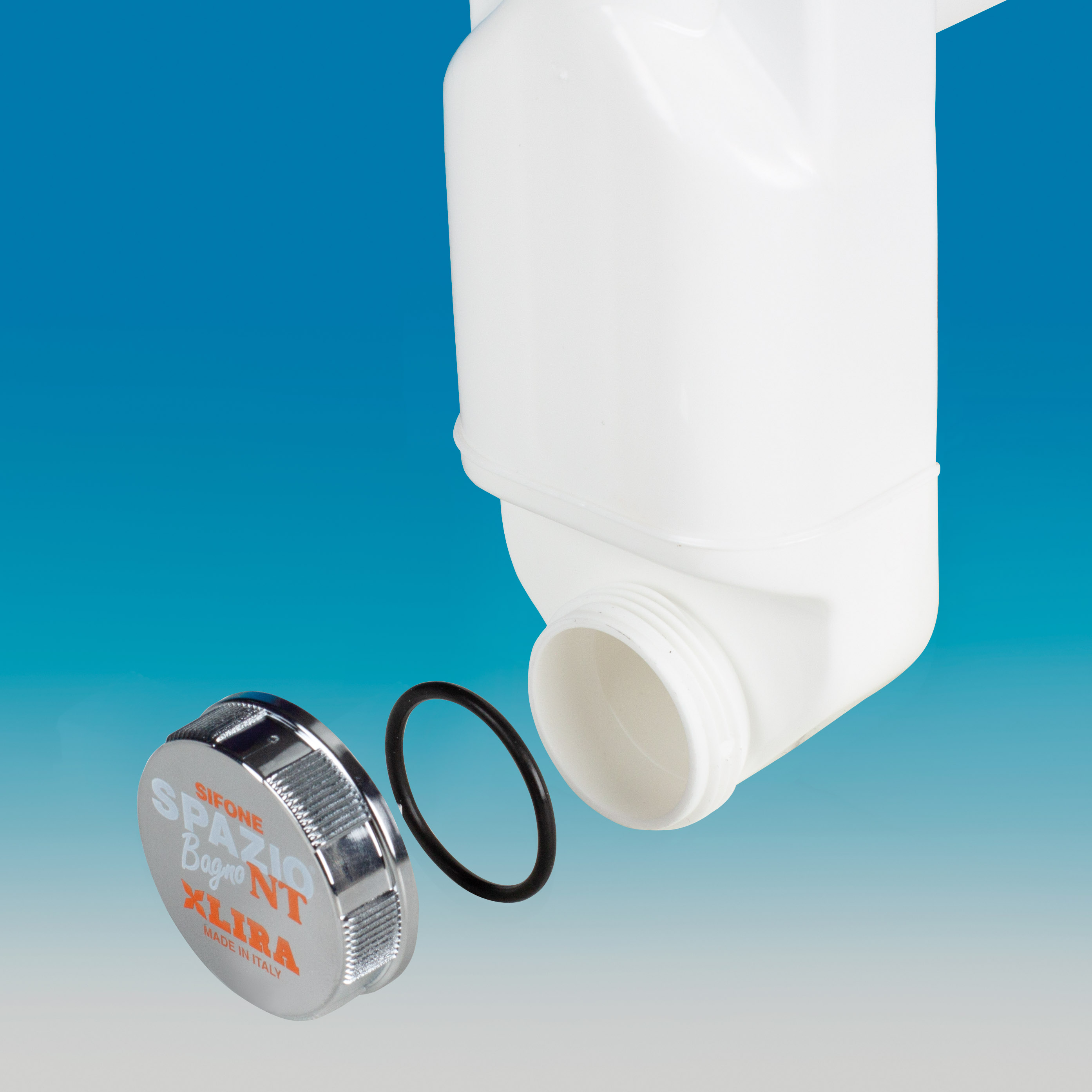 Spazio Bagno NT with space saver trap connector (Pat. Pend.)